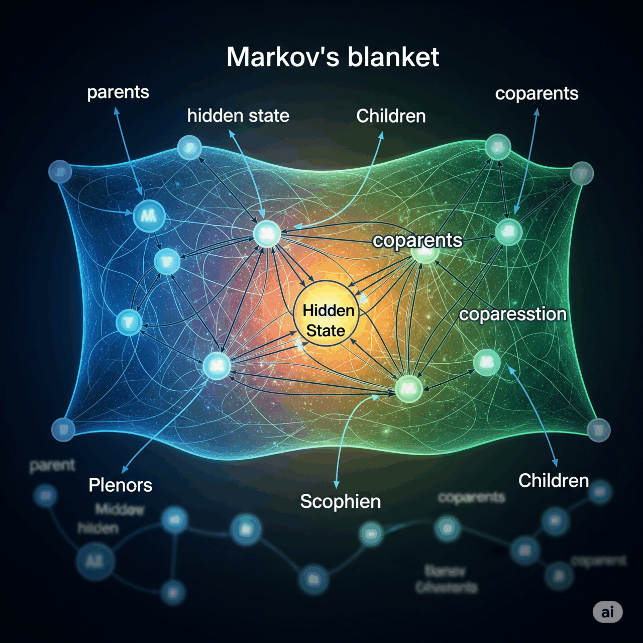 La coperta di Markov, per chi non fosse un fanatico dei grafi probabilistici, è una costruzione che riunisce tutto ciò che un nodo in una rete deve “conoscere” per funzionare, limitando la necessità di considerare l’intera rete globale. In pratica, si riduce al contesto immediato del nodo: genitori, figli e “coniugi” (altri nodi che influenzano i figli). Questo permette di isolare l’informazione essenziale senza perdersi in un mare di dati inutili. Ora, immaginate la GenAI: un groviglio di nodi, ciascuno con la sua funzione, che assorbe, processa e reagisce a un flusso costante di dati esterni. La membrana cellulare diventa, in questo senso, una metafora perfetta per i confini delle reti neurali artificiali, che devono filtrare e modellare l’ambiente esterno per mantenere la coerenza interna dei loro modelli predittivi.